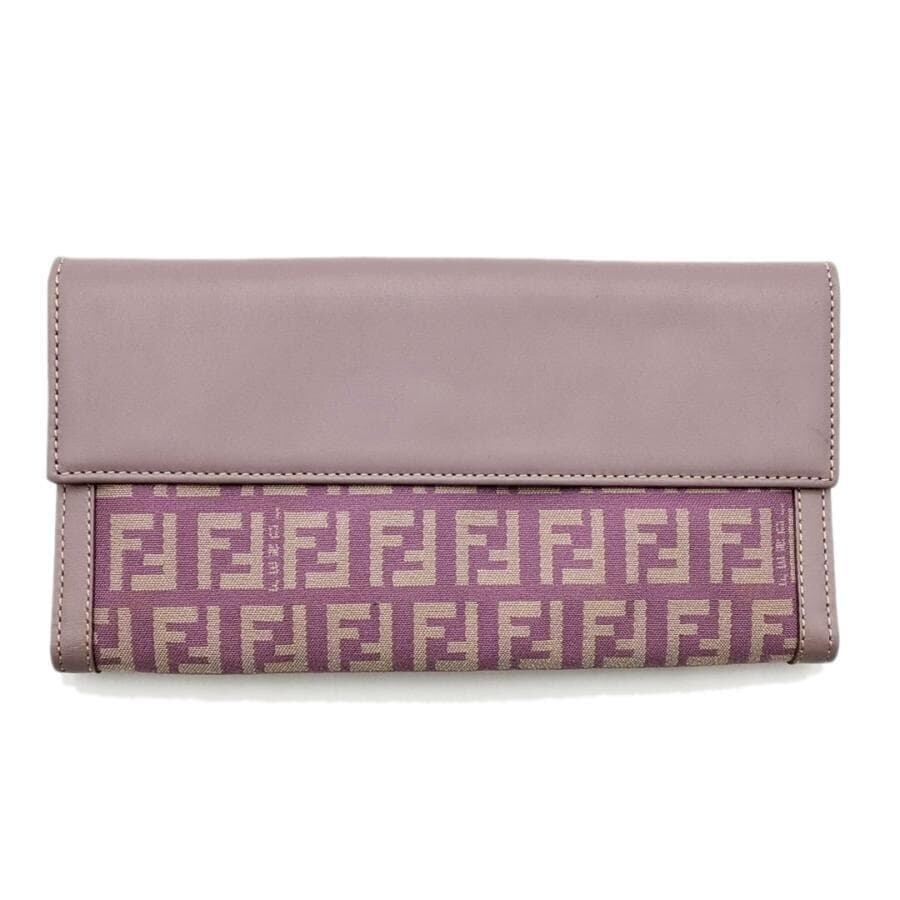 ・送料無料 超美品 フェンディ FENDI 長財布 財布 二つ折り ロングウォレット 2251-8M0032-KU8-048 Wホック 両面開き ズッカ柄 キャンバス レザー 伊製 イタリア製 紫 パープル系 レディース