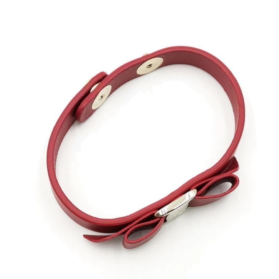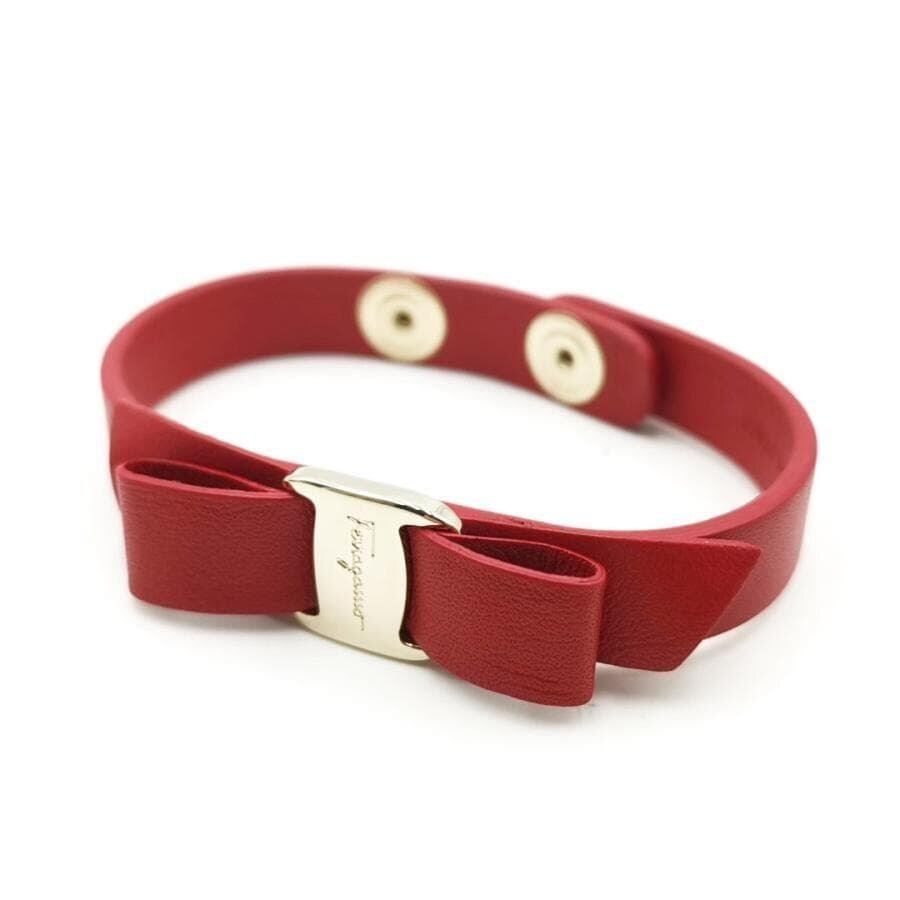 ・送料無料 超美品 サルヴァトーレフェラガモ Salvatore Ferragamo ブレスレット バングル アクセサリー 小物 ヴァラ リボン VARA Bracelet 762500 レザー 本革 伊製 イタリア製 赤 レッド系 ゴールド系 レディース
