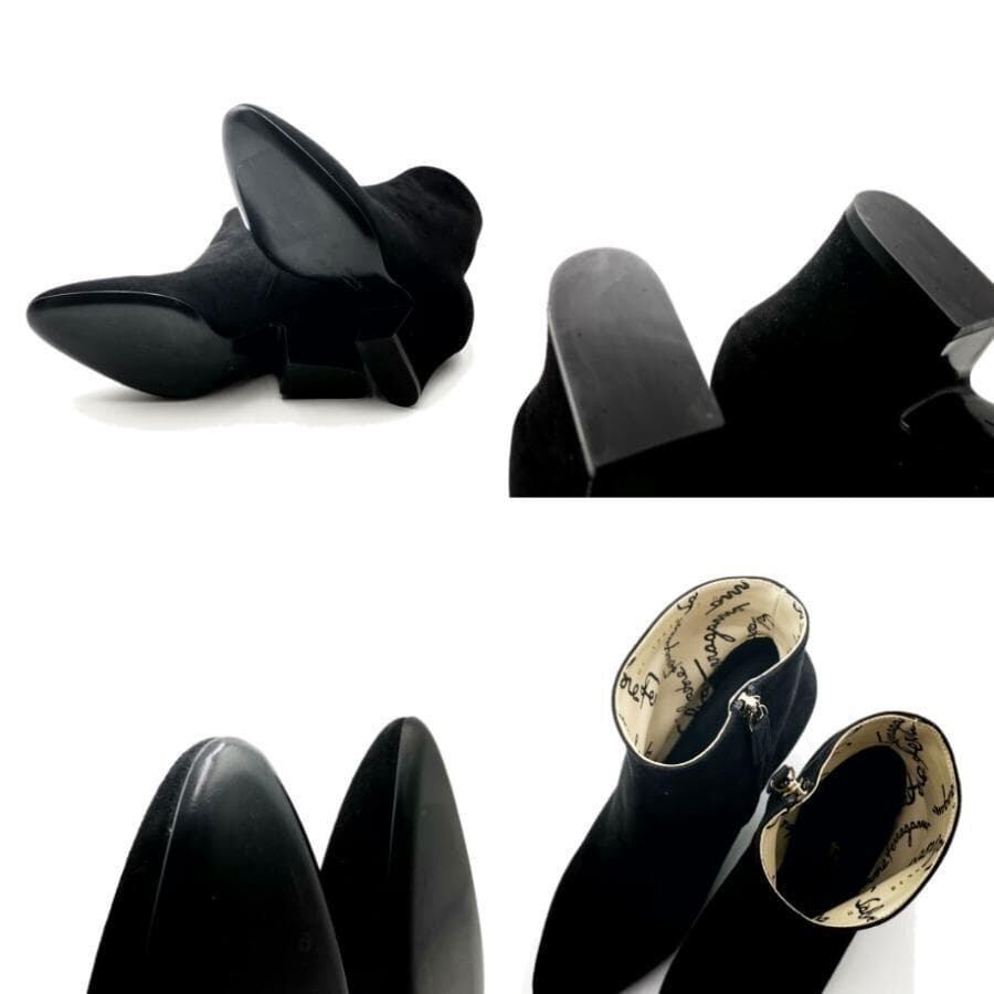 ・送料無料 超美品 サルヴァトーレフェラガモ Salvatore Ferragamo ショートブーツ 靴 シューズ サイドジップ SHIRIN 0724699 US18638 スエード レザー 本革 伊製 イタリア製 7D 24cm相当 黒 ブラック系 レディース
