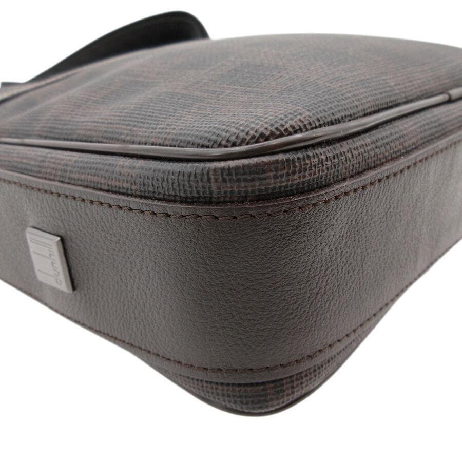 ・送料無料 美品 ダンヒル dunhill ショルダーバッグ ポシェット 鞄 斜め掛け D8 ディーエイト PVC レザー 本革 ダークブラウン系 メンズ