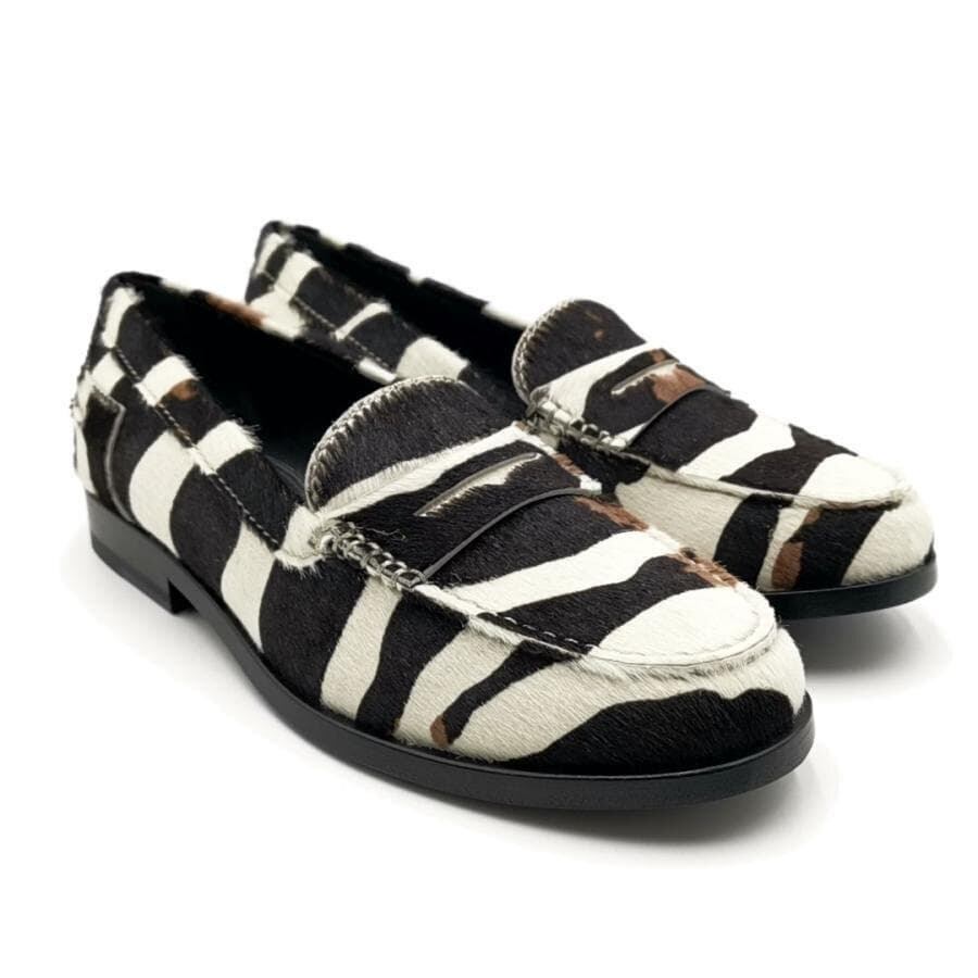 ・送料無料 超美品 トッズ TOD’S コインローファー ペニーローファー 靴 シューズ 3T0D11-01074 XXW16C00011ONZB001 CUOIO 16C MOCASSINO ハラコ 34 21cm相当 白黒 レディース