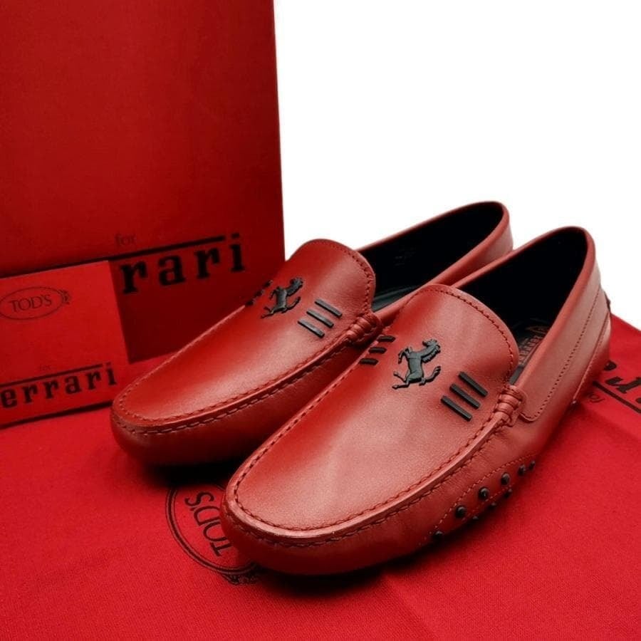 ・送料無料 超美品 トッズ フェラーリ TOD’S Ferrari ドライビングシューズ ローファー 靴 シューズ 3T0D11-00599 XRM0EO0CT90BR0R007 レザー 本革 伊製 イタリア製 5 1/2 24.5cm相当 赤 レッド系 メンズ