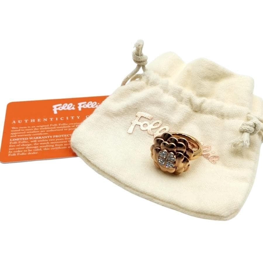 ・送料無料 超美品 フォリフォリ Folli Follie 指輪 リング アクセサリー 小物 フラワー 花 ハート ラインストーン 52 11号 ゴールド系 レディース