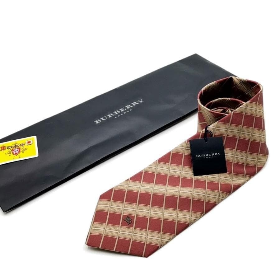・送料無料 新品 未使用 バーバリー BURBERRY ネクタイ スーツ小物 チェック柄 絹 シルク100% 日本製 赤 レッド系 メンズ