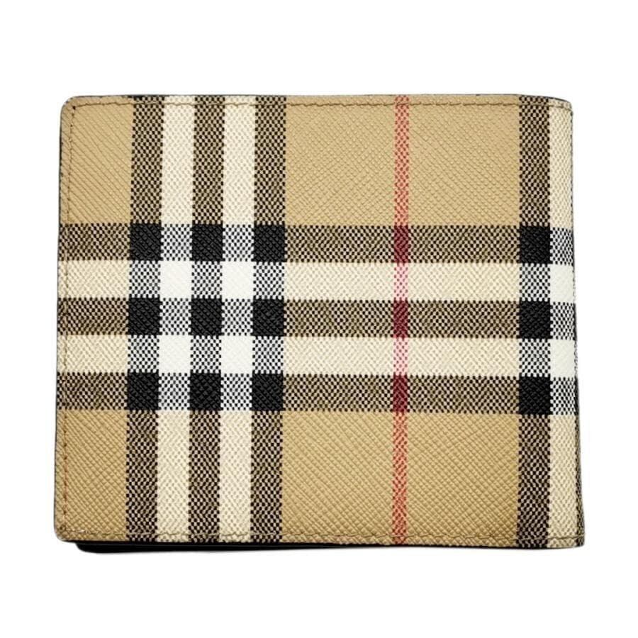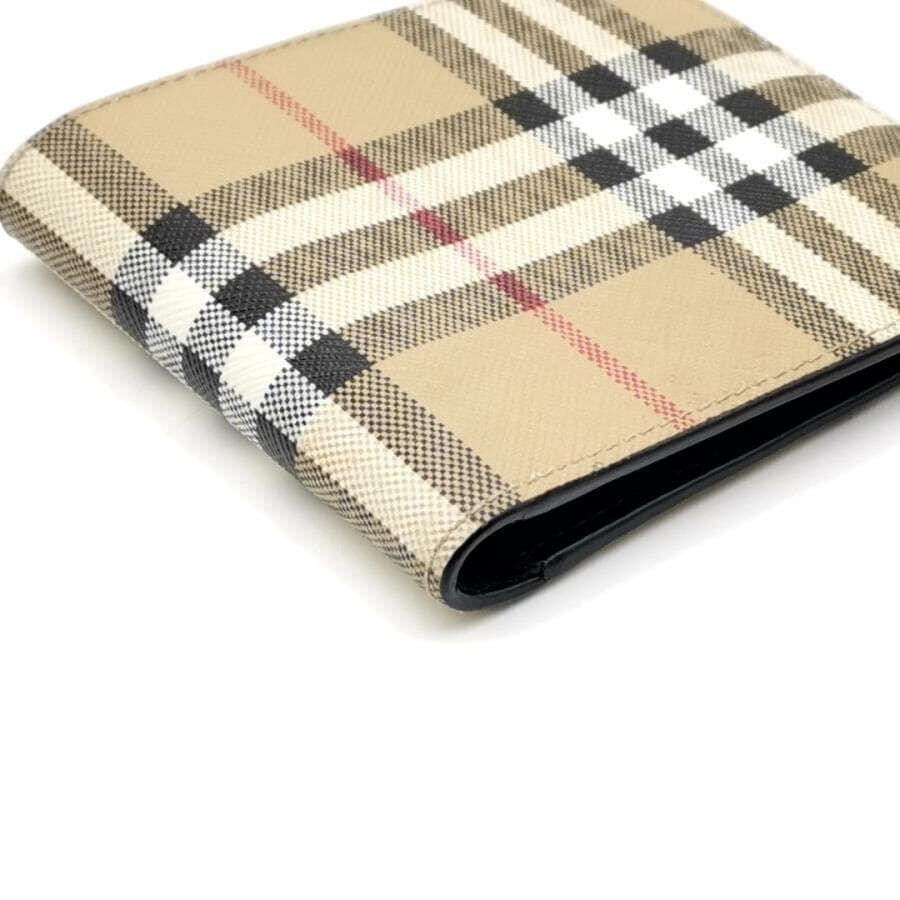 ・送料無料 美品 バーバリー BURBERRY 財布 札入れ 二つ折り ノバチェック柄 MDTITSIC70CH PVC レザー 本革 ベージュ系 メンズ