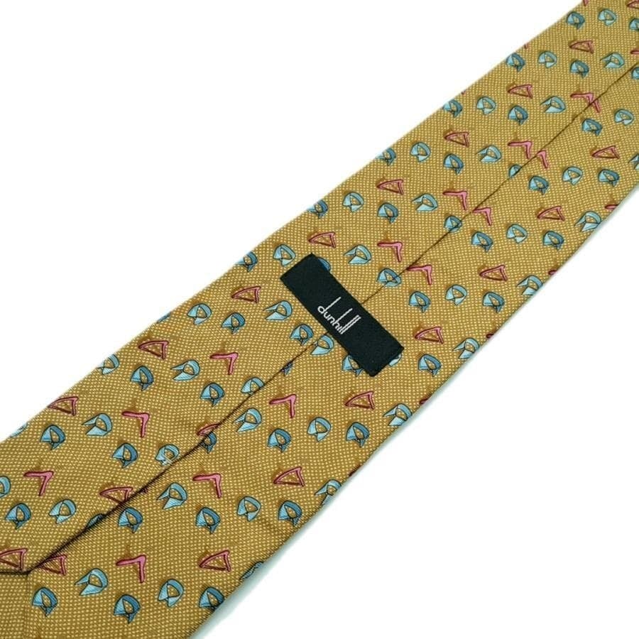 ・送料無料 美品 ダンヒル dunhill ネクタイ スーツ小物 総柄 絹 シルク100% 伊製 イタリア製 黄 イエロー系 メンズ