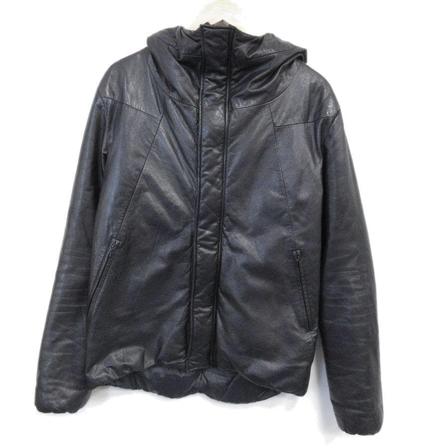 ・送料無料 美品 ツーディライブ 02 DERIV. レザージャケット アウター ブルゾン フード パーカー フーディ 中綿 234044 ジップアップ ダブルジップ 本革 牛革 黒 ブラック系 1 S メンズ