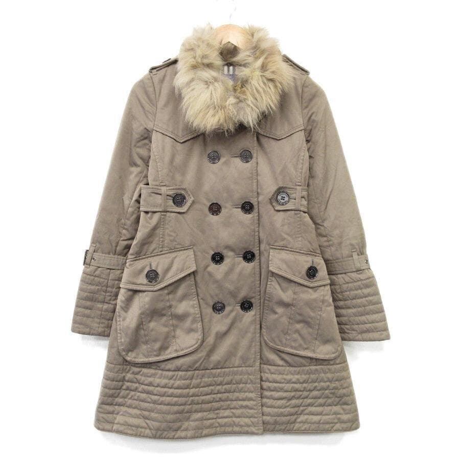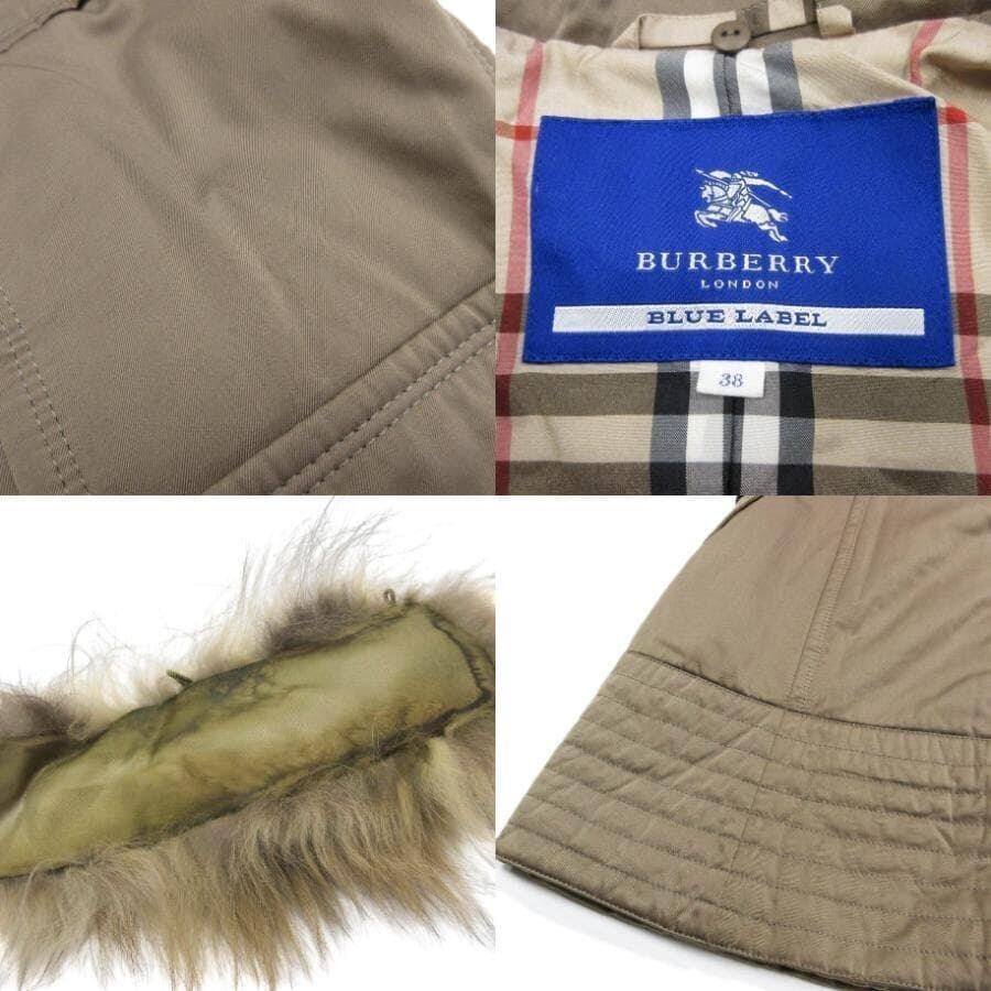 ・送料無料 バーバリーブルーレーベル BURBERRY BLUE LABEL トレンチコート 中綿 アウター ジャケット FRF37-768-50 フォックスファー ノバチェック柄 38 ベージュ系 レディース
