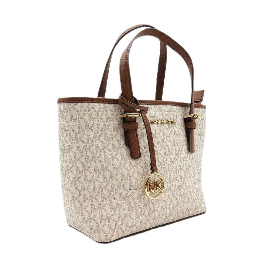 ・送料無料 超美品 マイケルコース MICHAEL KORS ハンドバッグ トートバッグ ショルダーバッグ 鞄 手提げ 斜め掛け 35T9GTVT0B PVC JET SET TRAVEL ジェットセットトラベル 2WAY オフホワイト系 レディース