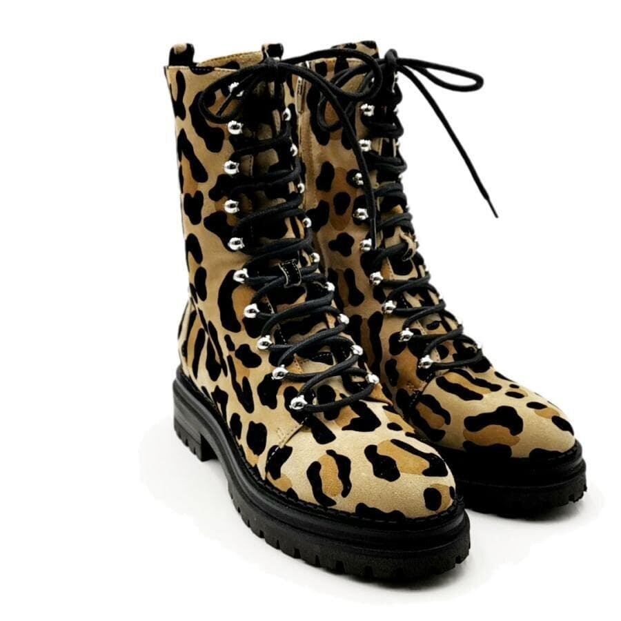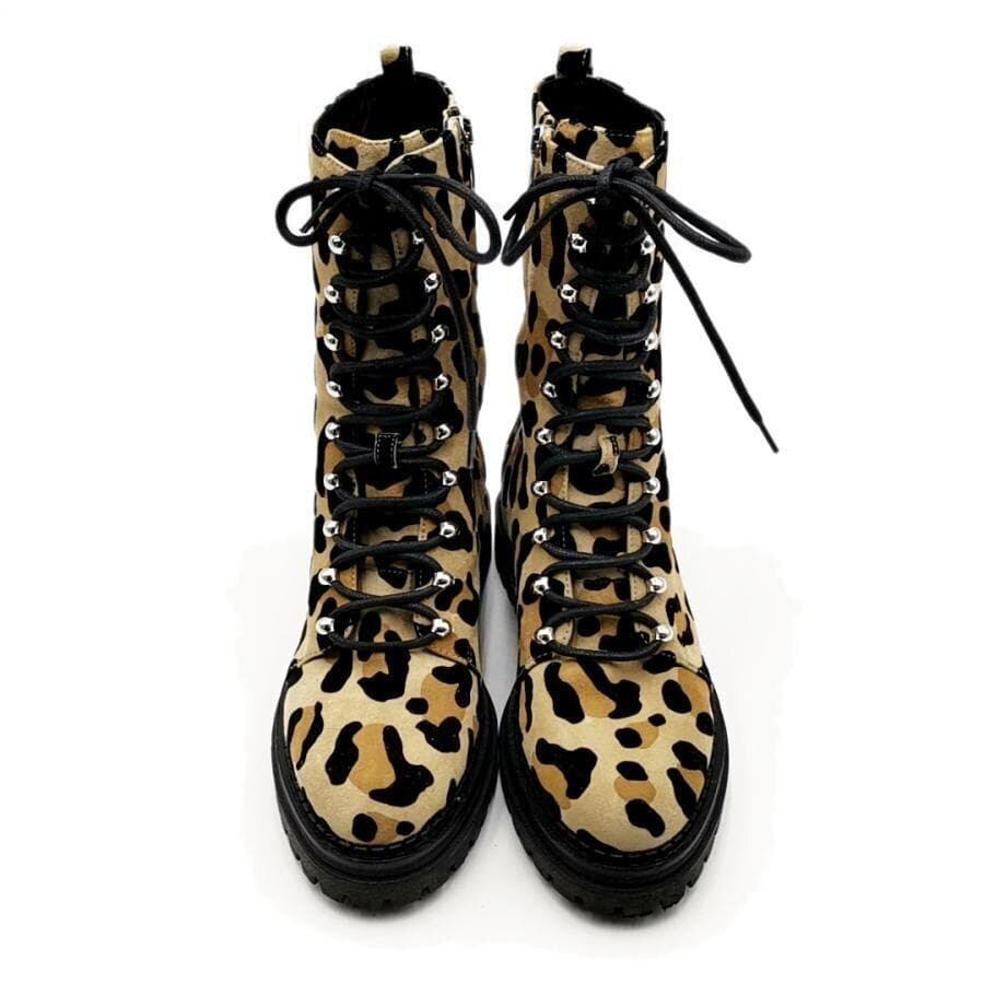 ・送料無料 超美品 セルジオロッシ sergio rossi ブーツ 靴 シューズ A92020 スエード レオパード ヒョウ柄 サイドジップ レースアップ 伊製 イタリア製 37 1/2 24.5cm相当 ベージュ系 レディース