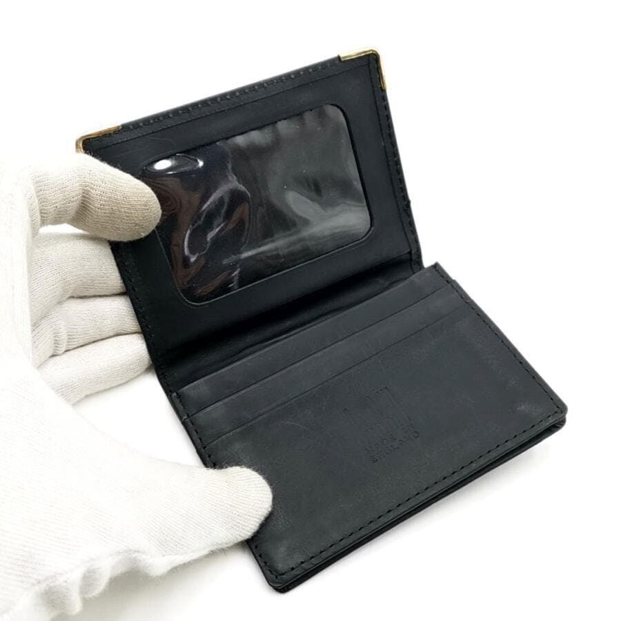 ・送料無料 美品 ダンヒル dunhill 名刺入れ カードケース パスケース 定期入れ 二つ折り オックスフォード レザー 本革 イングランド製 黒 ブラック系 メンズ