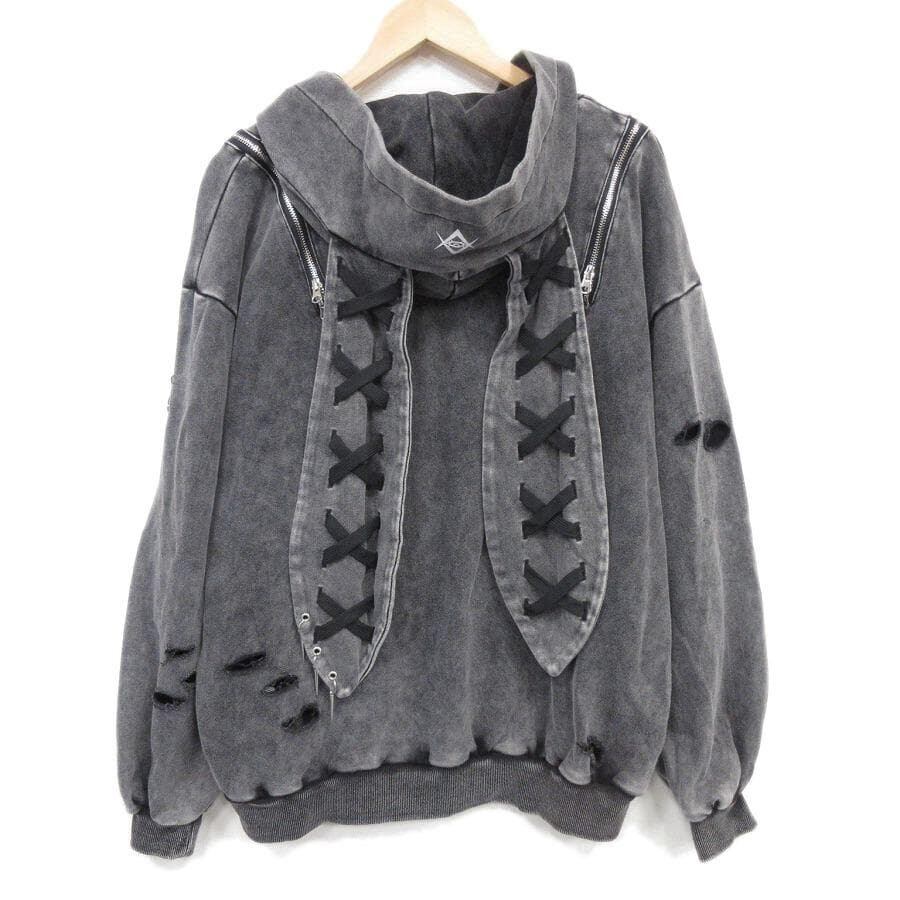 ・送料無料 超美品 レフレム REFLEM チェーン付き ブロークンうさ耳 ジップアップ パーカー 4059402800 RF25-E23 長袖 ダブルジップ フード フーディ ウォッシュ加工 Free 灰 グレー系 レディース