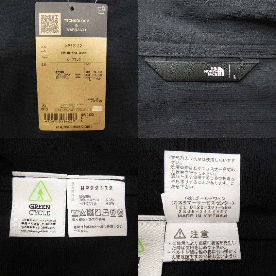 ・送料無料 超美品 ザノースフェイス THE NORTH FACE TNFビーフリージャケット アウトドアジャケット NP22132 TNF Be Free Jacket パーカー フード フーディ ジップアップ L 黒 ブラック系 メンズ