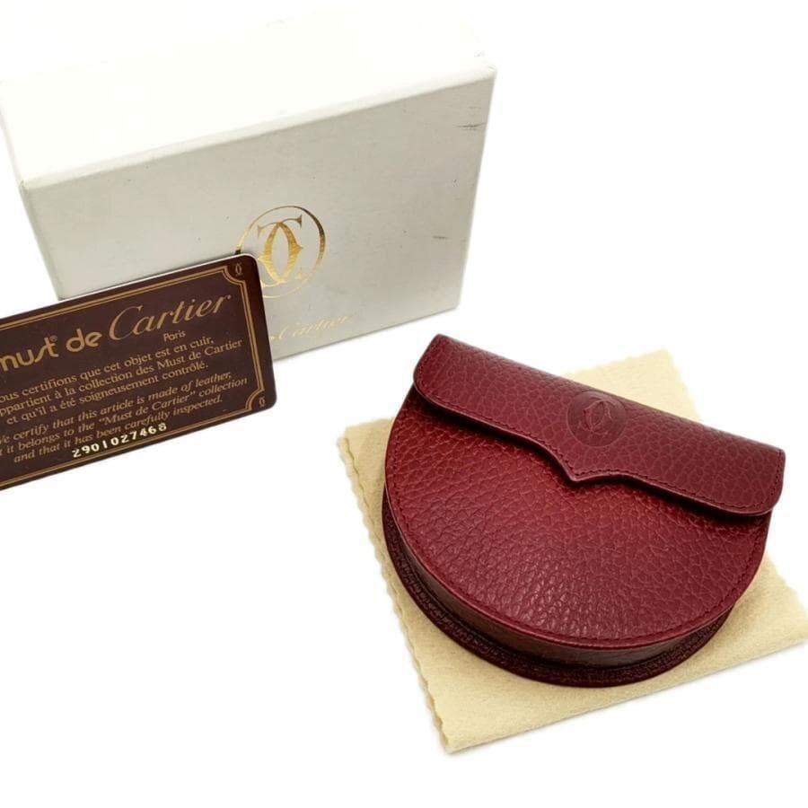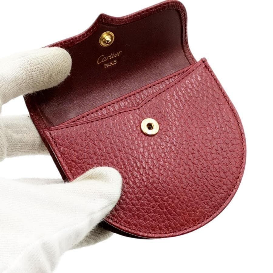 ・送料無料 超美品 カルティエ Cartier コインケース 小銭入れ 財布 マストライン L3000018 レザー 本革 伊製 イタリア製 ボルドー系 レディース
