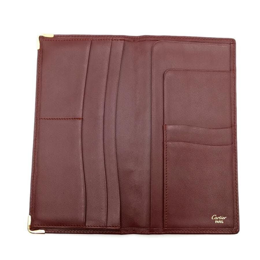 ・送料無料 カルティエ Cartier 長財布 財布 札入れ 二つ折り ロングウォレット マストライン レザー 本革 ボルドー系 レディース
