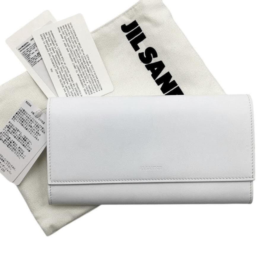 ・送料無料 超美品 ジルサンダー JIL SANDER 長財布 財布 二つ折り ロングウォレット J09UI0001-P6560 P01OU2280044 レザー 本革 伊製 イタリア製 白 ホワイト系 レディース