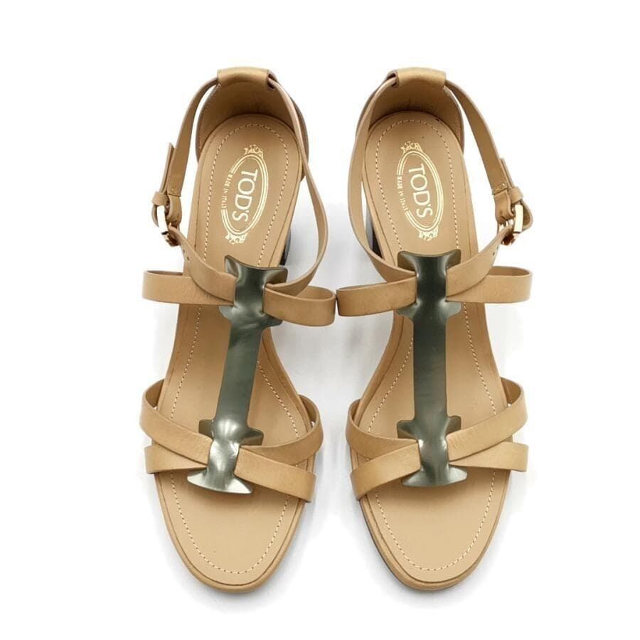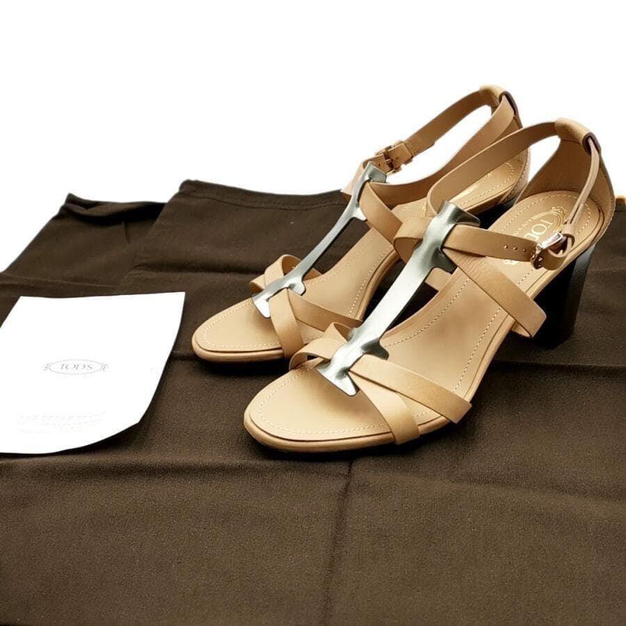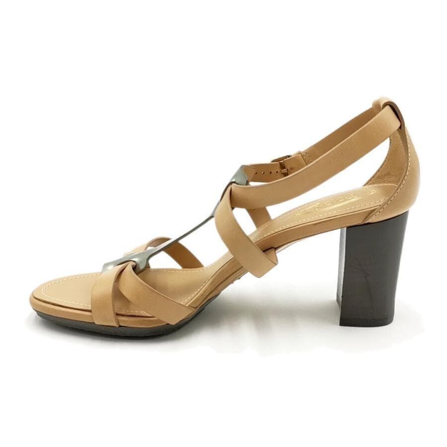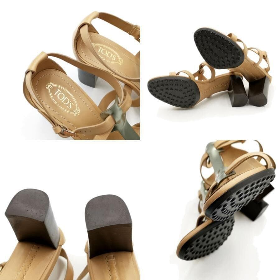 ・送料無料 美品 トッズ TOD'S サンダル 靴 シューズ ストラップ レザー 本革 伊製 イタリア製 35 1/2 22.5cm相当 ベージュ系 レディース