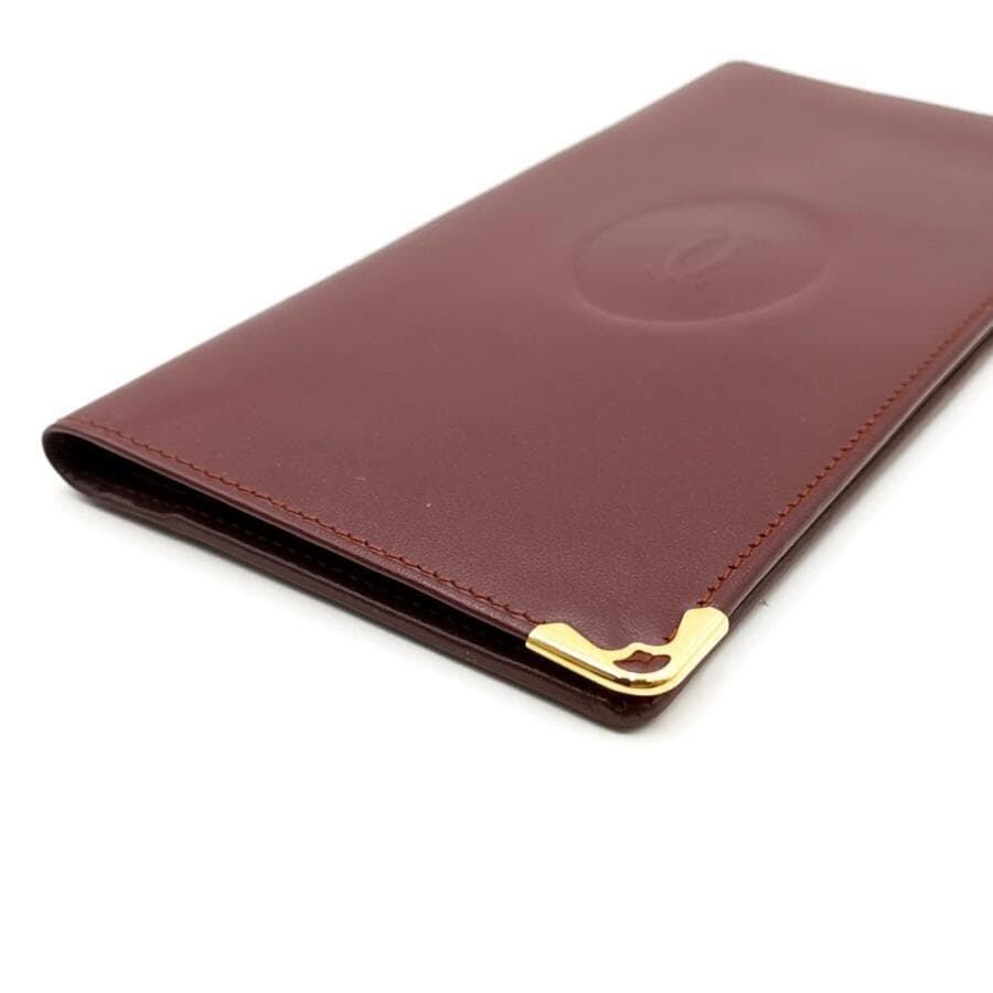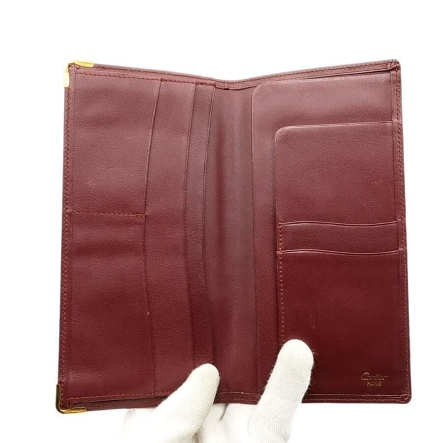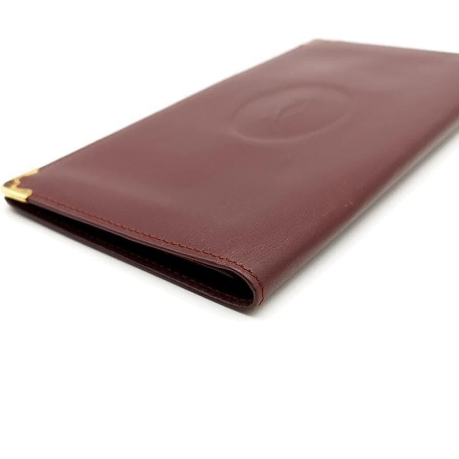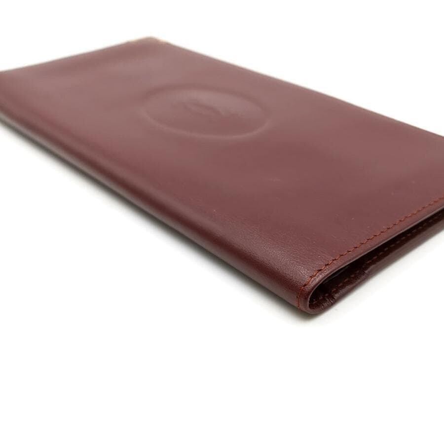 ・送料無料 美品 カルティエ Cartier 長財布 財布 札入れ ロングウォレット 二つ折り マストライン レザー 本革 ボルドー系 レディース