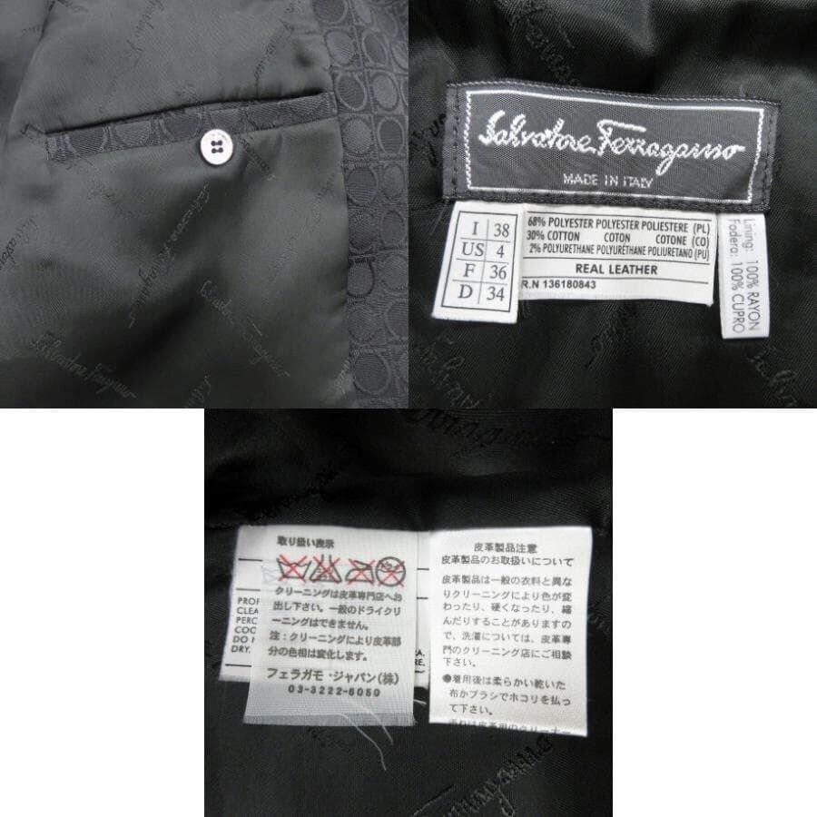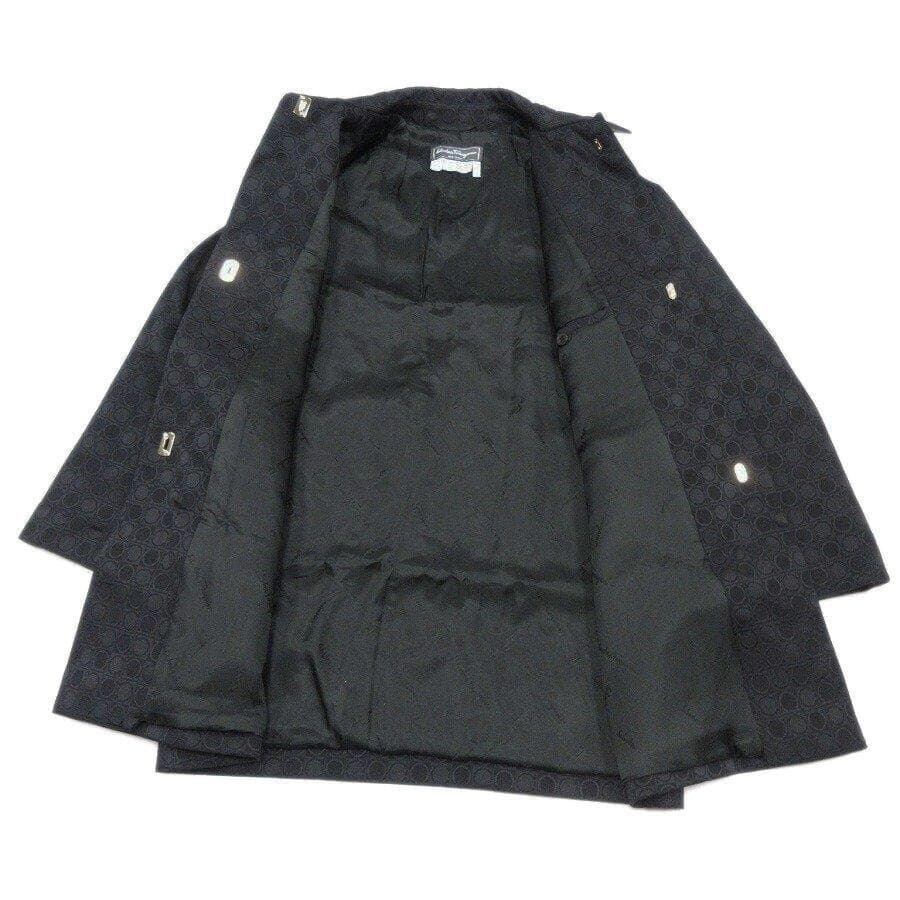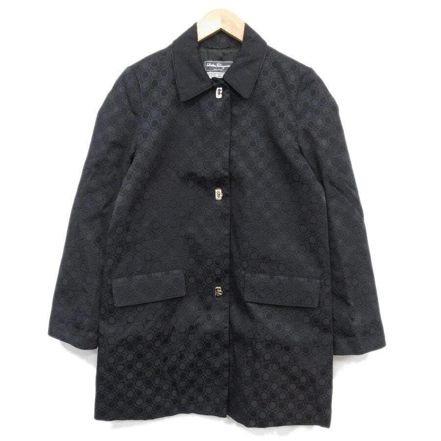 ・送料無料 超美品 サルヴァトーレフェラガモ Salvatore Ferragamo ステンカラーコート ジャケット アウター ガンチーニ 総柄 伊製 イタリア製 38 黒 ブラック系 レディース