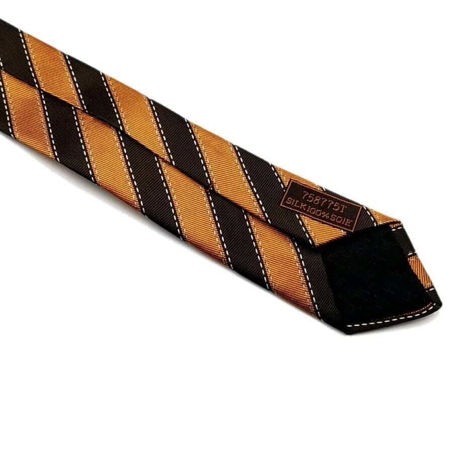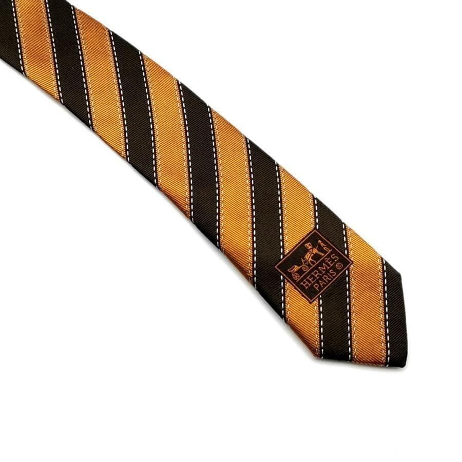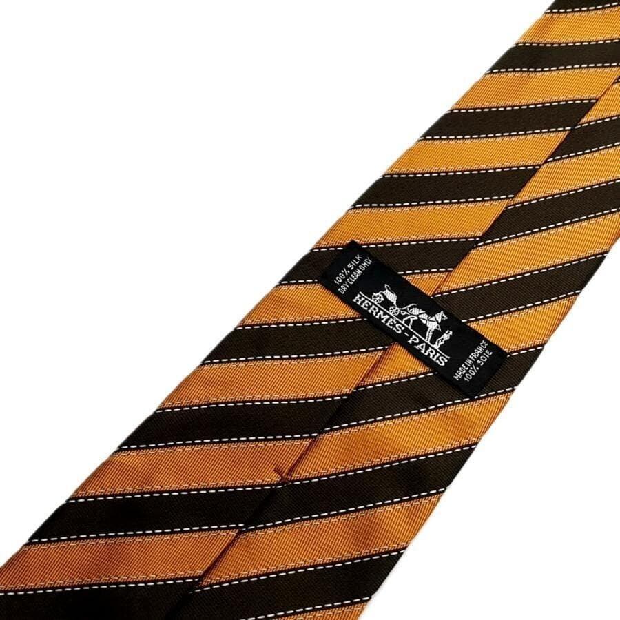 ・送料無料 美品 エルメス HERMES ネクタイ 758775T 絹 シルク100% ストライプ柄 仏製 フランス製 茶 ブラウン系 メンズ