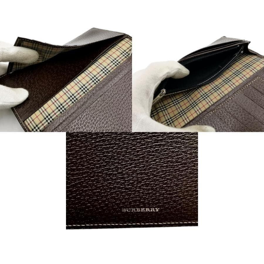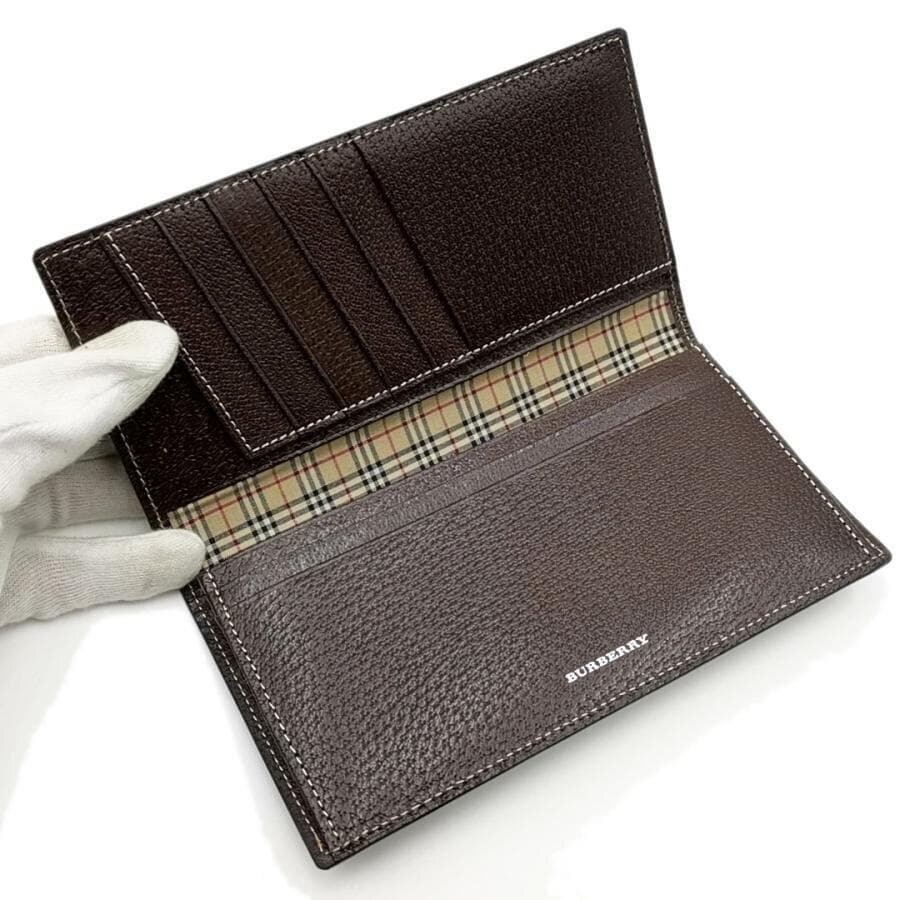 ・送料無料 超美品 バーバリー BURBERRY 長財布 財布 二つ折り ロングウォレット ノバチェック柄 レザー 本革 茶 ブラウン系 メンズ