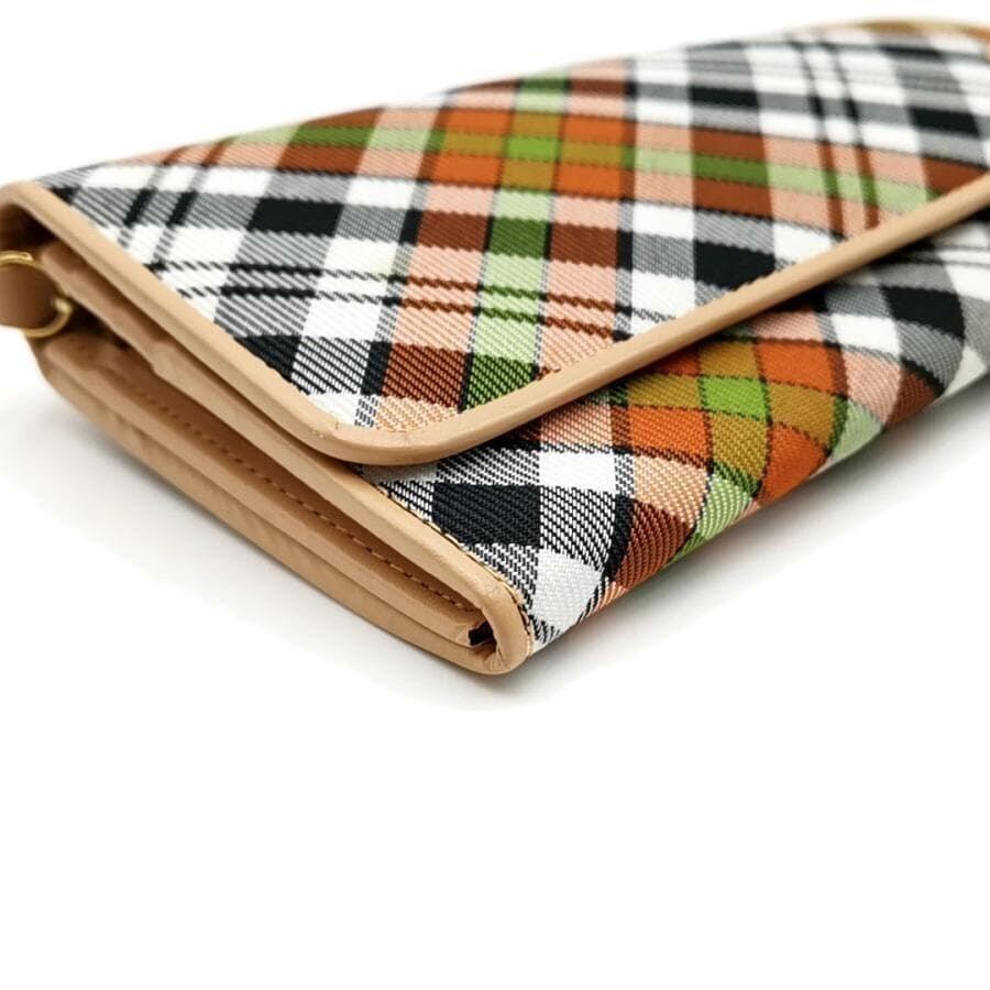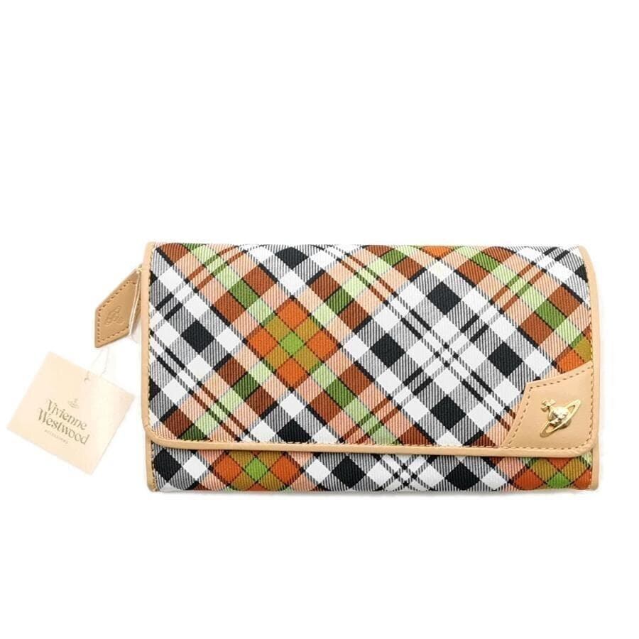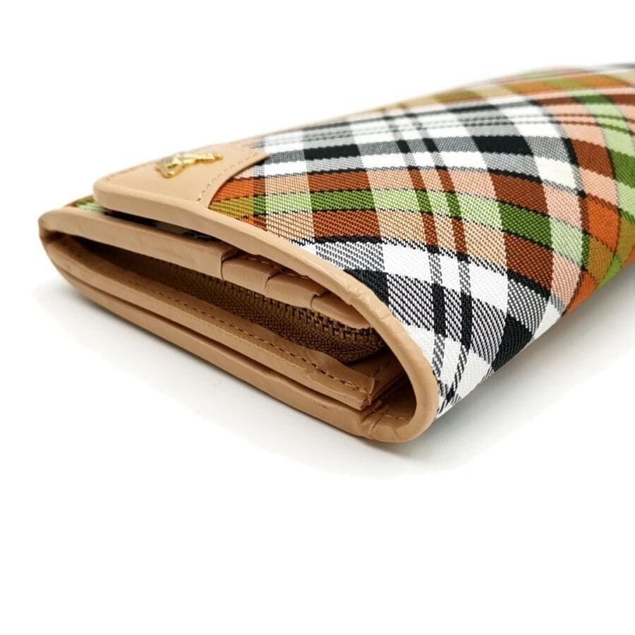 ・送料無料 超美品 ヴィヴィアンウエストウッド Vivienne Westwood 長財布 財布 二つ折り ロングウォレット 3118C302 チェック柄 オーブ キャンバス レザー L字ファスナー ベージュ系 レディース