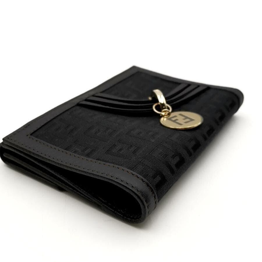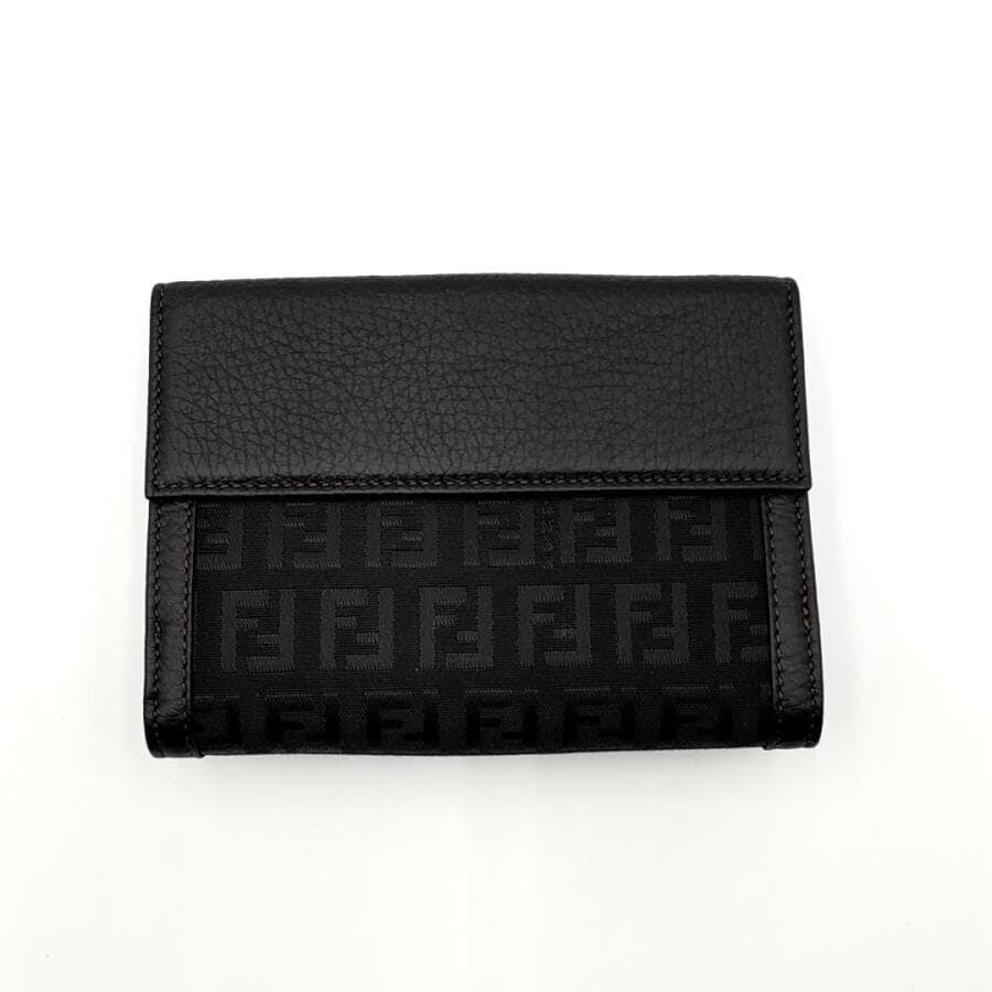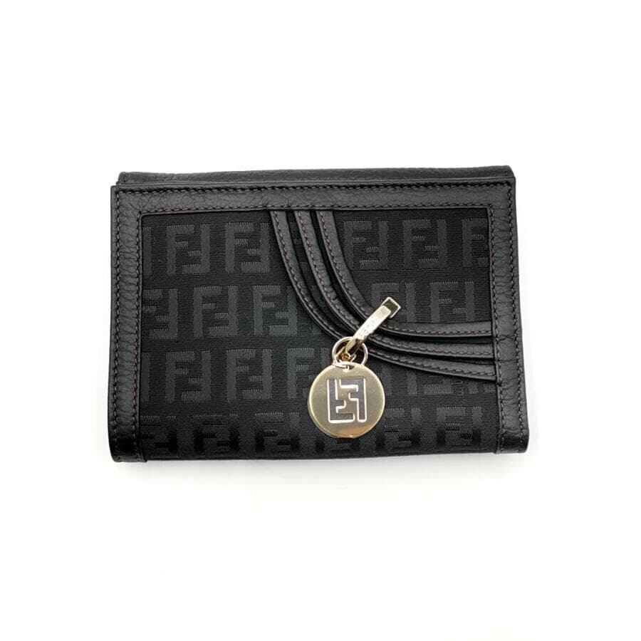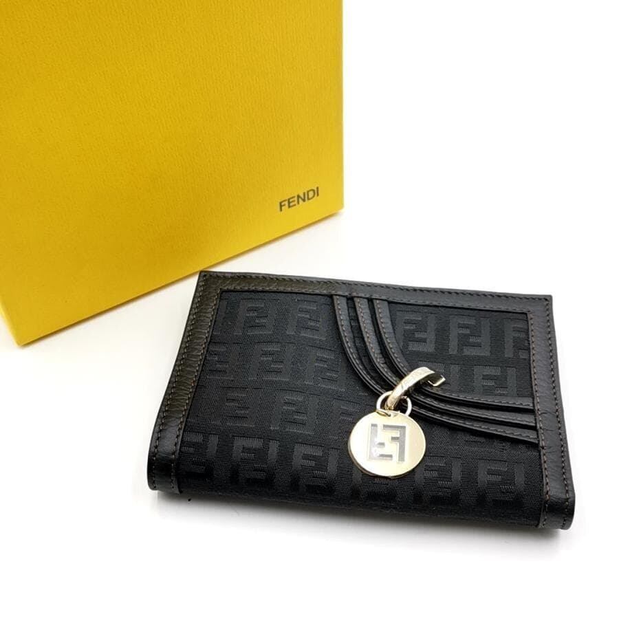 ・送料無料 超美品 フェンディ FENDI 財布 二つ折りミディアムウォレット ズッカ柄 キャンバス レザー A 407979 伊製 イタリア製 黒 ブラック系 レディース
