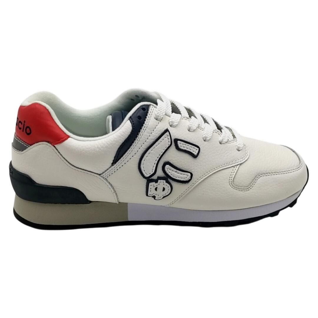 ・送料無料 超美品 サンガッチョ SANGACIO スニーカー 靴 シューズ トリコロール にゅ~ず ローカット レースアップ レザー 27cm 白 ホワイト系 メンズ