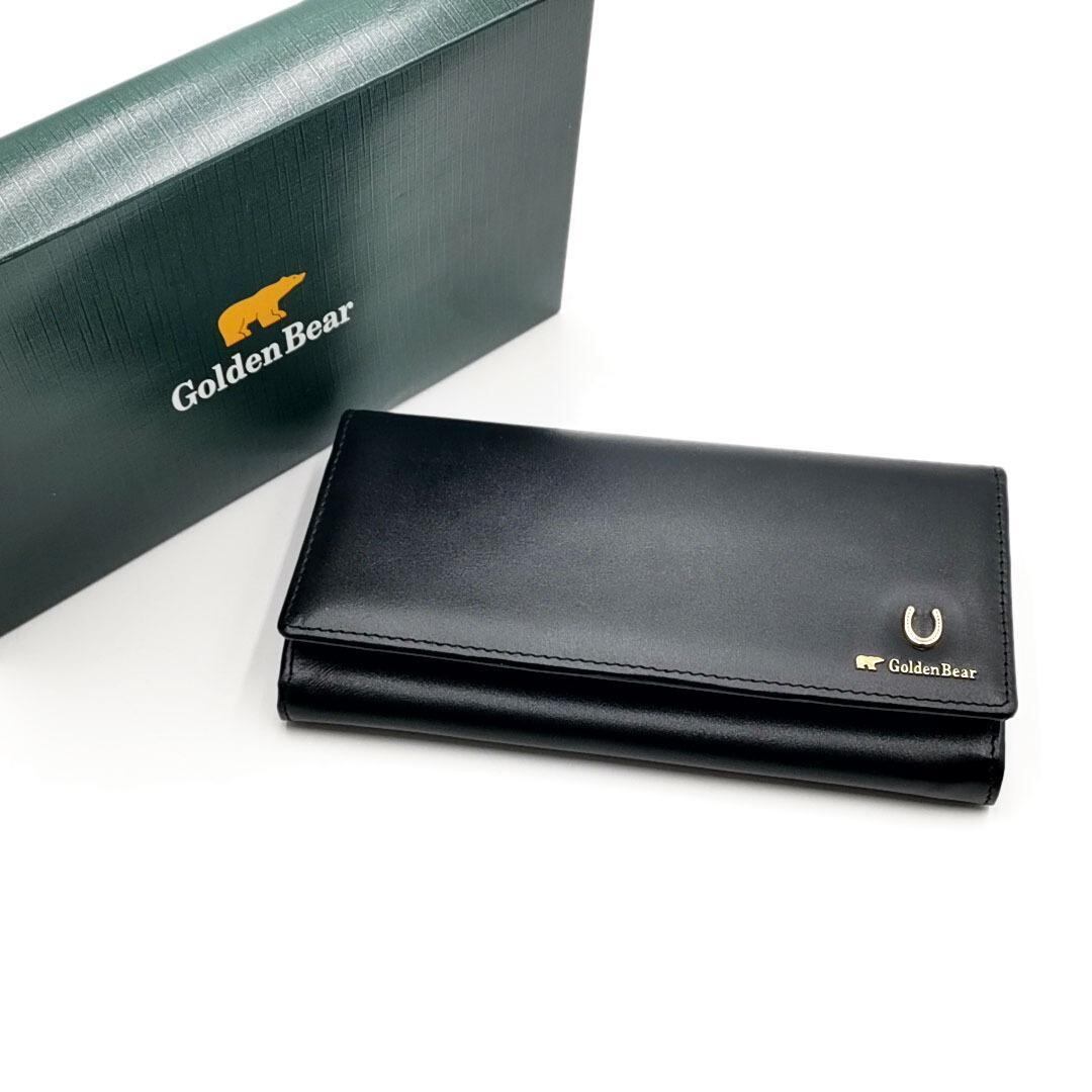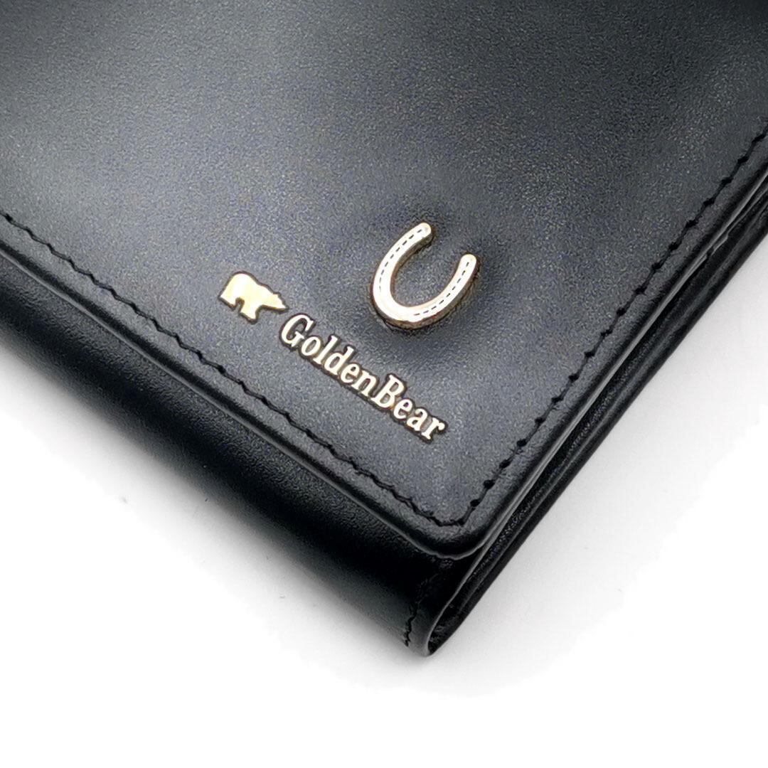 ・送料無料 超美品 ゴールデンベア GoldenBear 長財布 財布 二つ折り ロングウォレット ホースレザー 馬革 黒 ブラック系 メンズ
