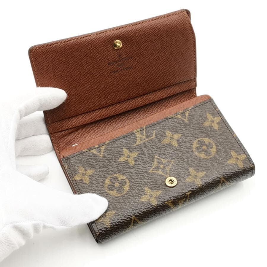・送料無料 美品 ルイヴィトン LOUIS VUITTON 財布 二つ折り ウォレット モノグラム ポルトモネビエトレゾール M61730 SP0015 仏製 フランス製 茶 ブラウン系 レディース