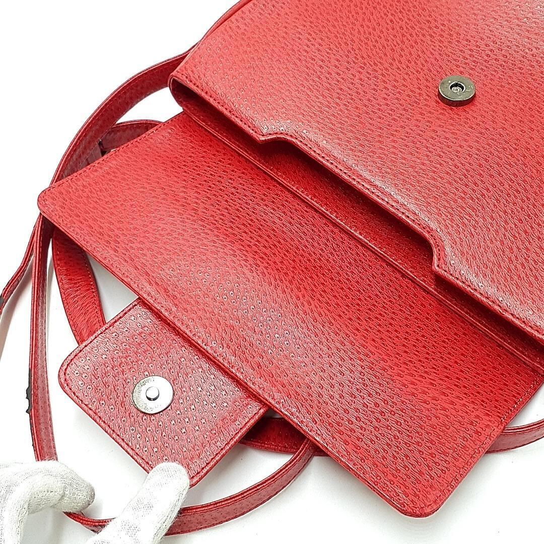 ・送料無料 ボーデッサン beau dessin ショルダーバッグ 鞄 斜め掛け 総柄 型押し レザー 赤 レッド系 レディース