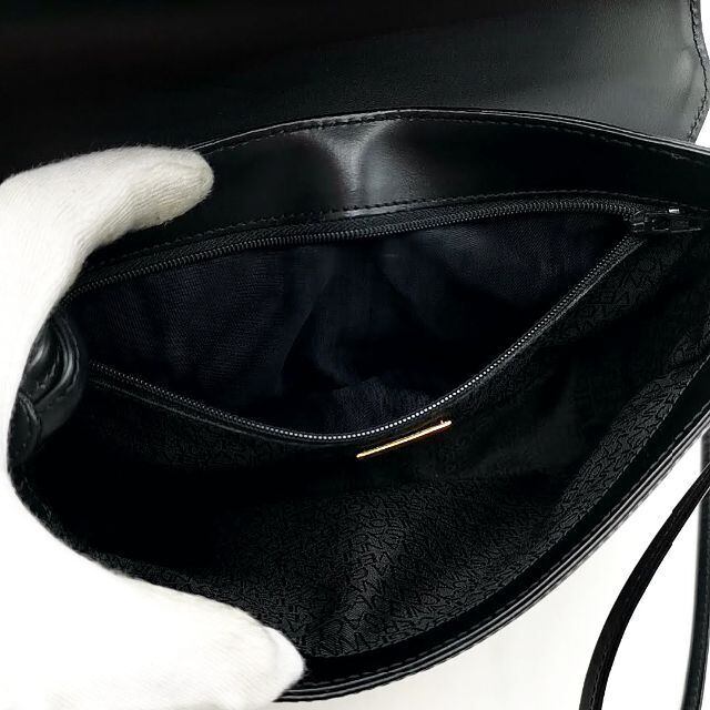 ・送料無料?美品?ジャンニヴェルサーチ?ヴェルサーチェ?GIANNI?VERSACE?ショルダーバッグ?ポシェット?鞄?肩掛け?メデューサ?レザー?本革?伊製?イタリア製?黒?ブラック系?レディース