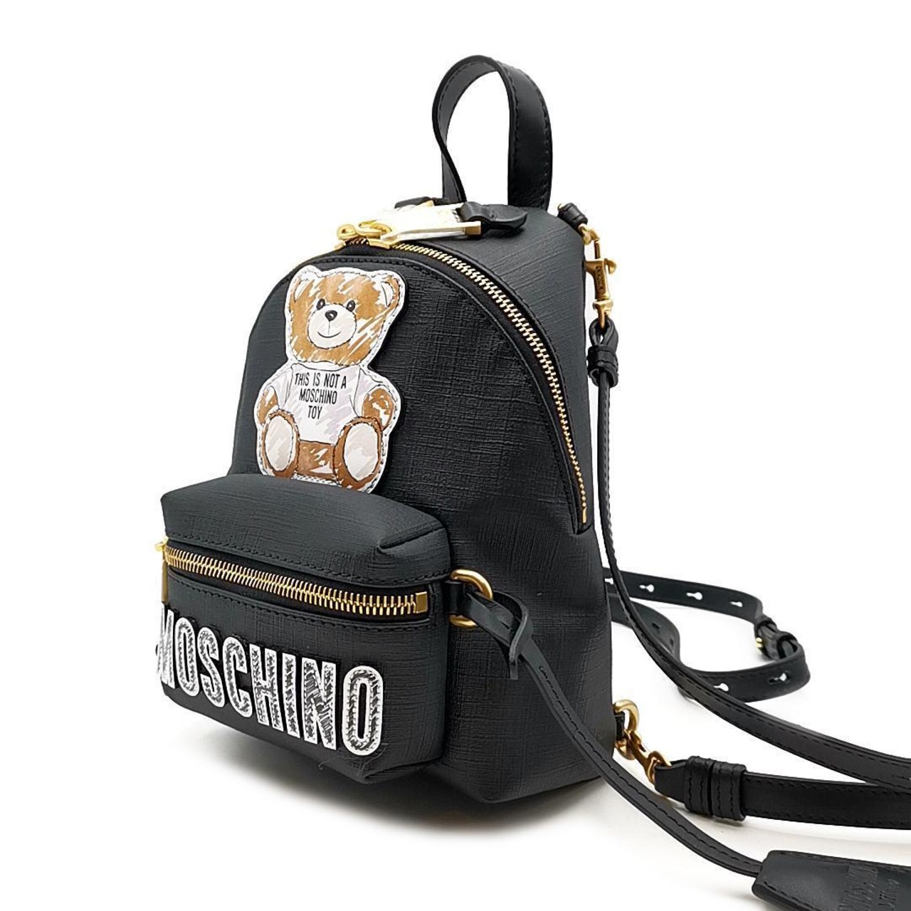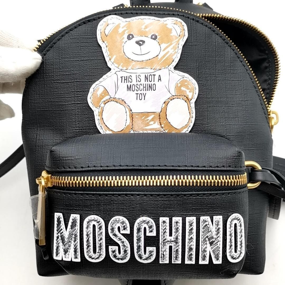 ・送料無料 未使用モスキーノ MOSCHINO リュックサック バックパック デイパック バッグ ショルダーバッグ ボディーバッグ 鞄 くま テディベア 2WAY ゴールド金具 伊製 イタリア製 黒 ブラック系 レディース