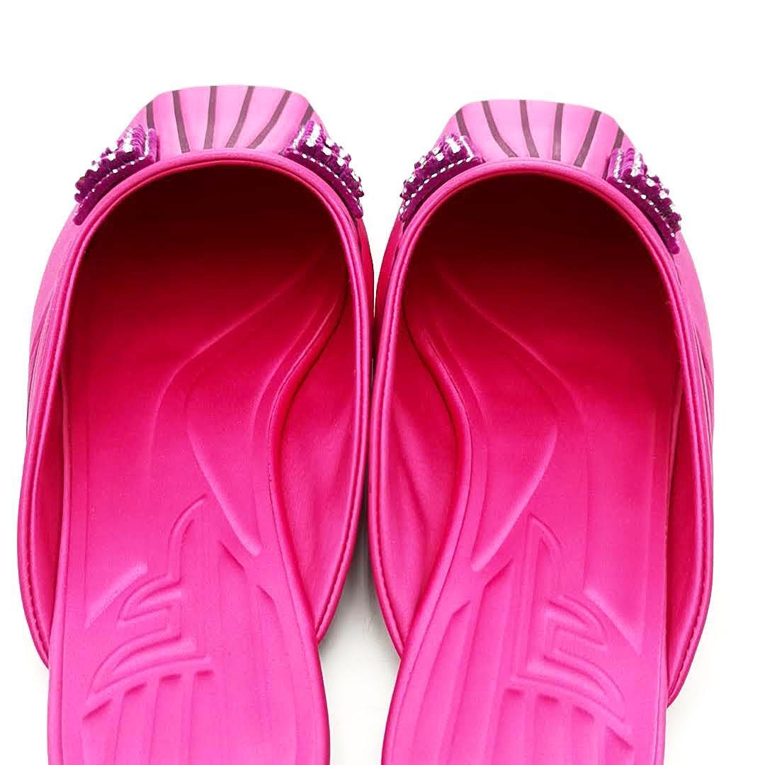 ・送料無料 超美品 フェンディ FENDI 靴 シューズ フラットシューズ ミュール サンダル スクエアトゥ クリスタル サテン 伊製 イタリア製 36 23cm相当 ピンク系 レディース