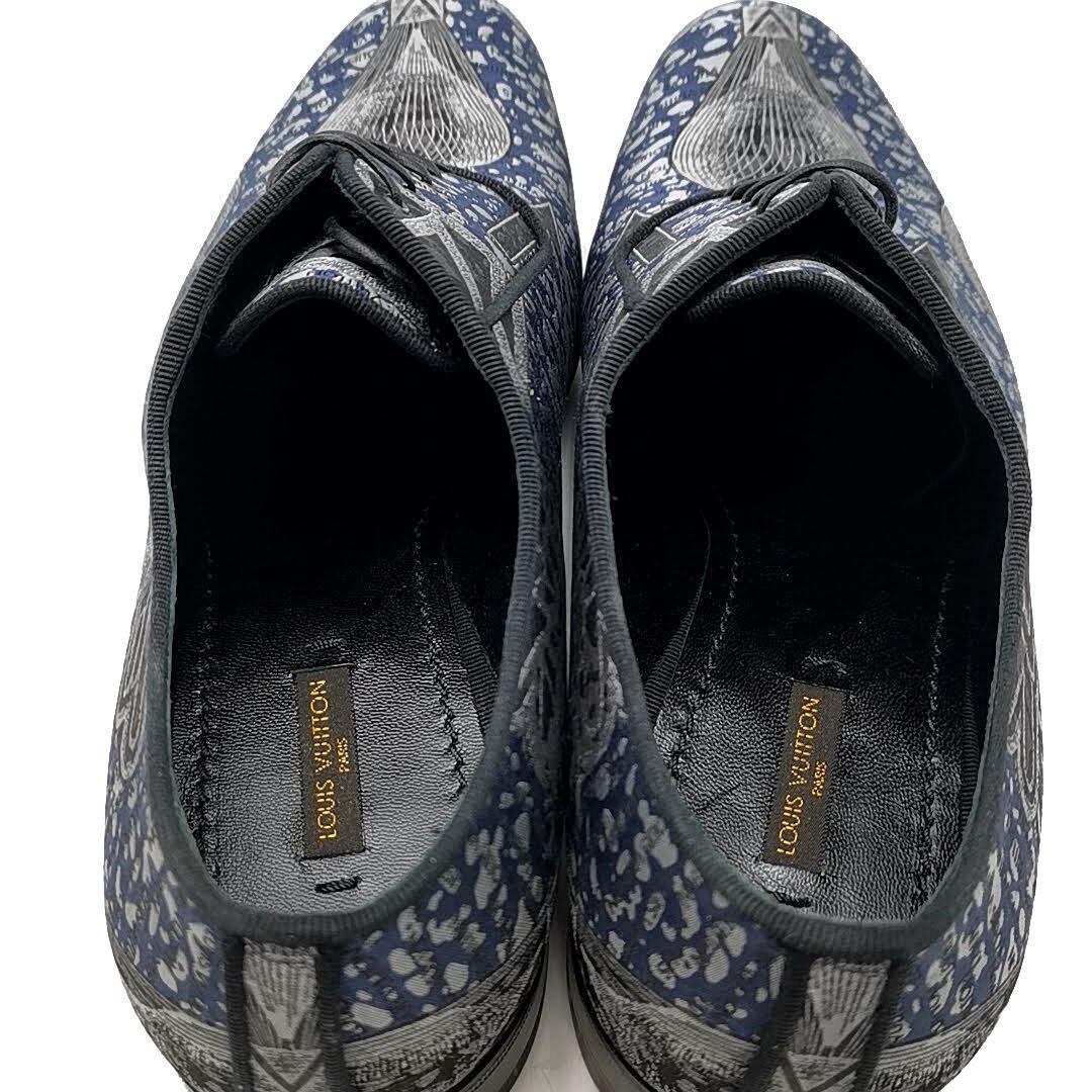 ・送料無料 超美品 ルイヴィトン LOUIS VUITTON ビジネスシューズ ドレスシューズ レースアップ NI0124 総柄 伊製 イタリア製 7 27.5cm相当 紺 ネイビー系 メンズ