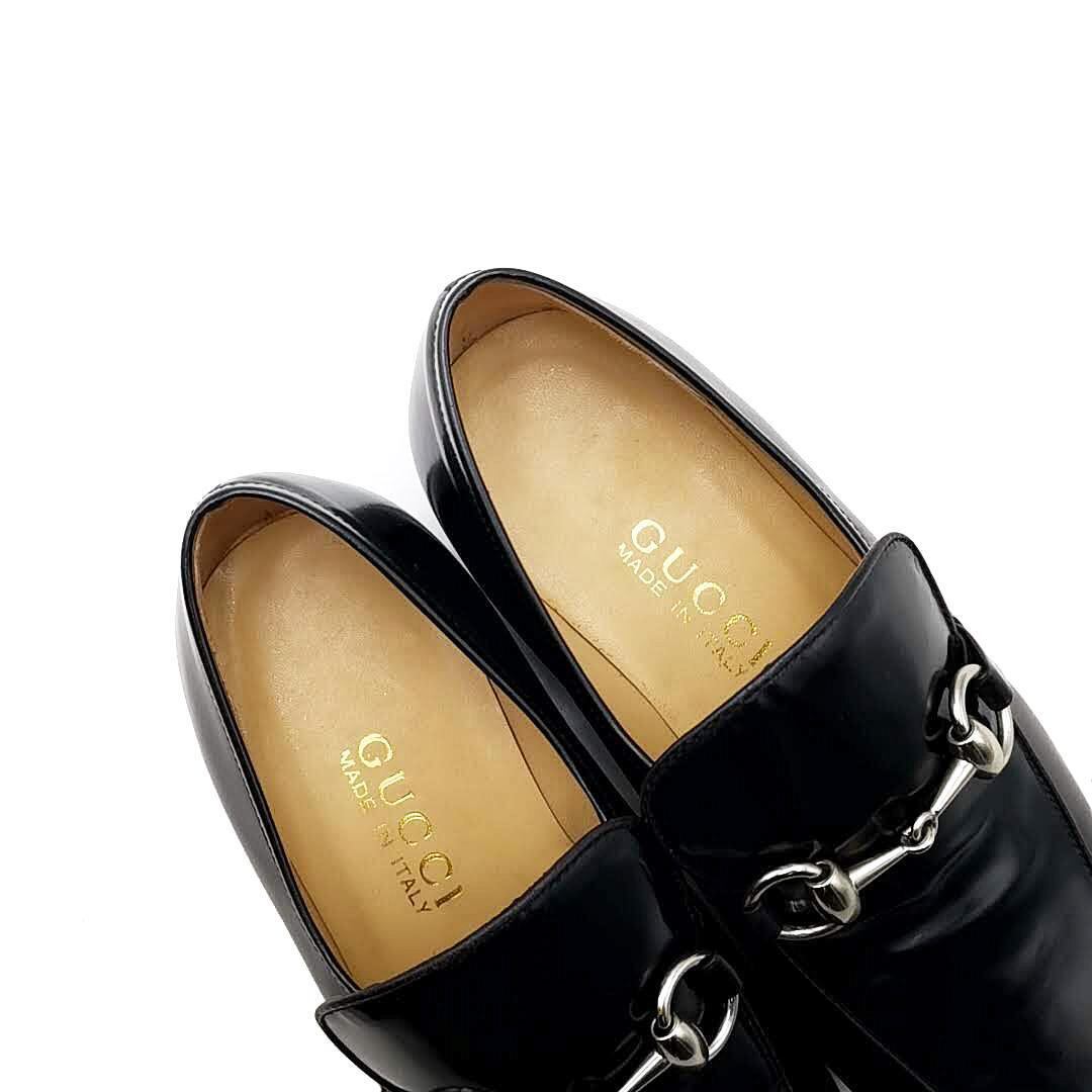 ・送料無料 美品 グッチ GUCCI ビジネスシューズ 靴 シューズ ローファー ビットローファー ホースビット エナメル ガラスレザー 伊製 イタリア製 5 1/2B 21.5cm相当 黒 ブラック系 レディース