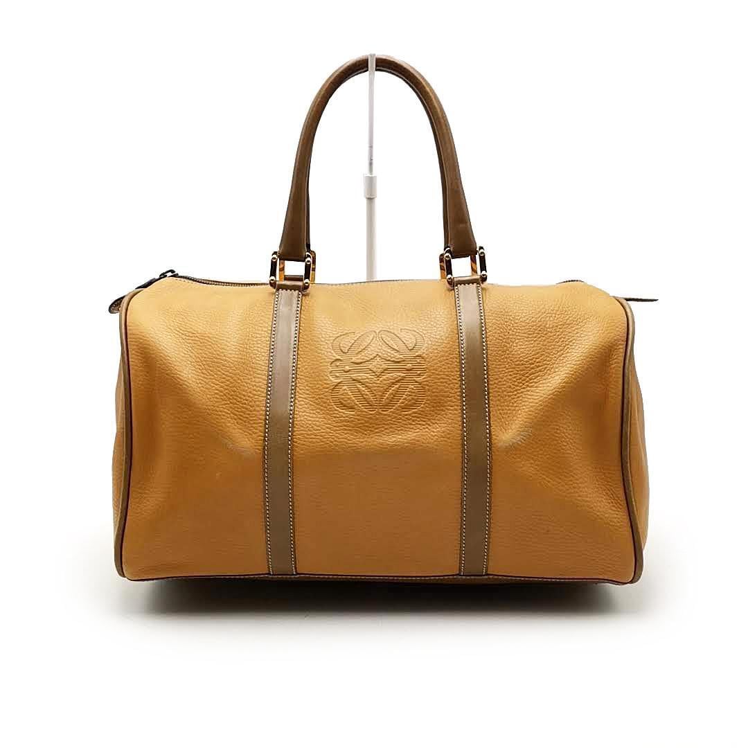 ・送料無料 ロエベ LOEWE ボストンバッグ トラベルバッグ 旅行カバン ハンドバッグ 鞄 手提げ アナグラム レザー 本革 茶 ブラウン系 レディース
