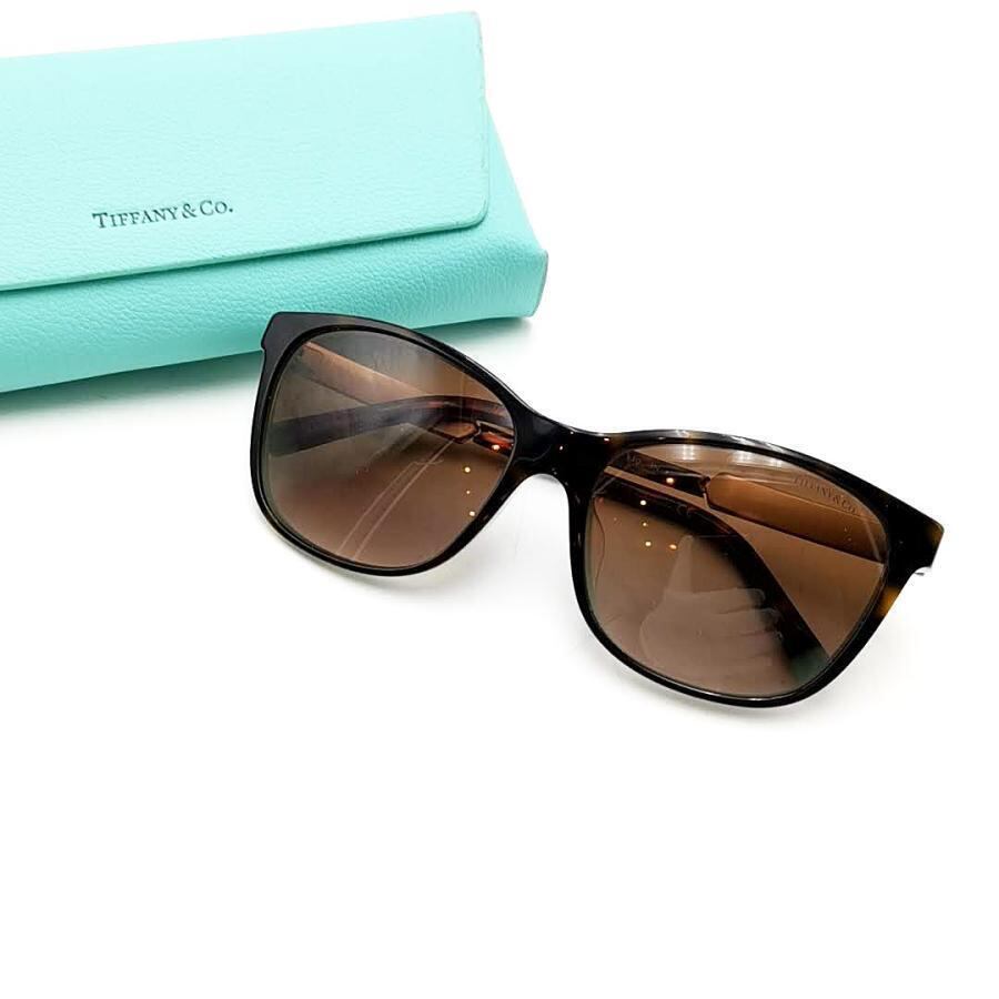 ・送料無料 美品 ティファニー TIFFANY & CO. サングラス セルフレーム TF4174-B-F 8134/3B ラインストーン 伊製 イタリア製 56□16 140 茶 ブラウン系 ティファニーブルー系 レディース