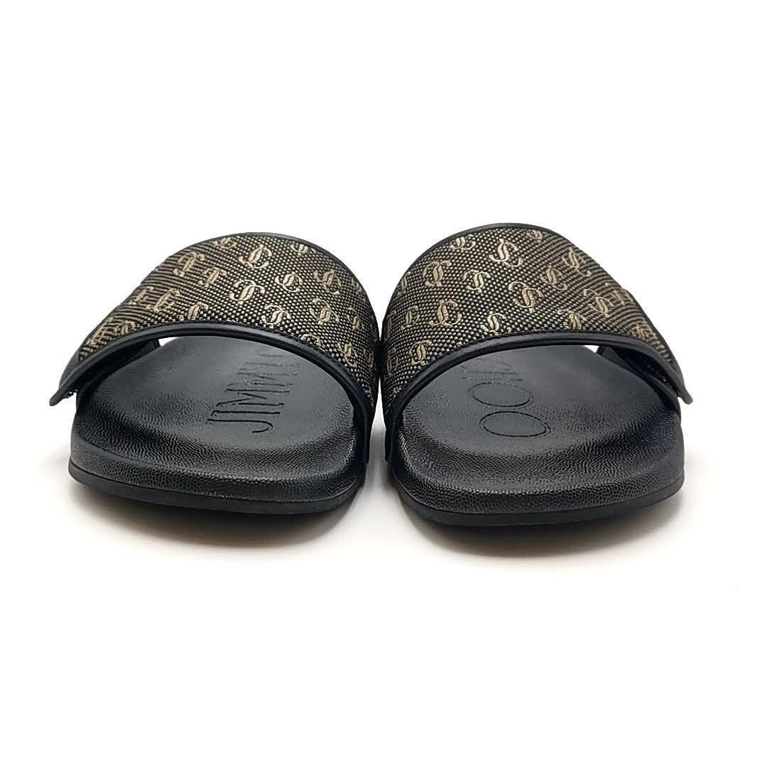 ・送料無料 美品 ジミーチュウ JIMMY CHOO サンダル スライドサンダル フィッツ FITZ ロゴ 総柄 44 29cm相当 黒 ブラック系 メンズ