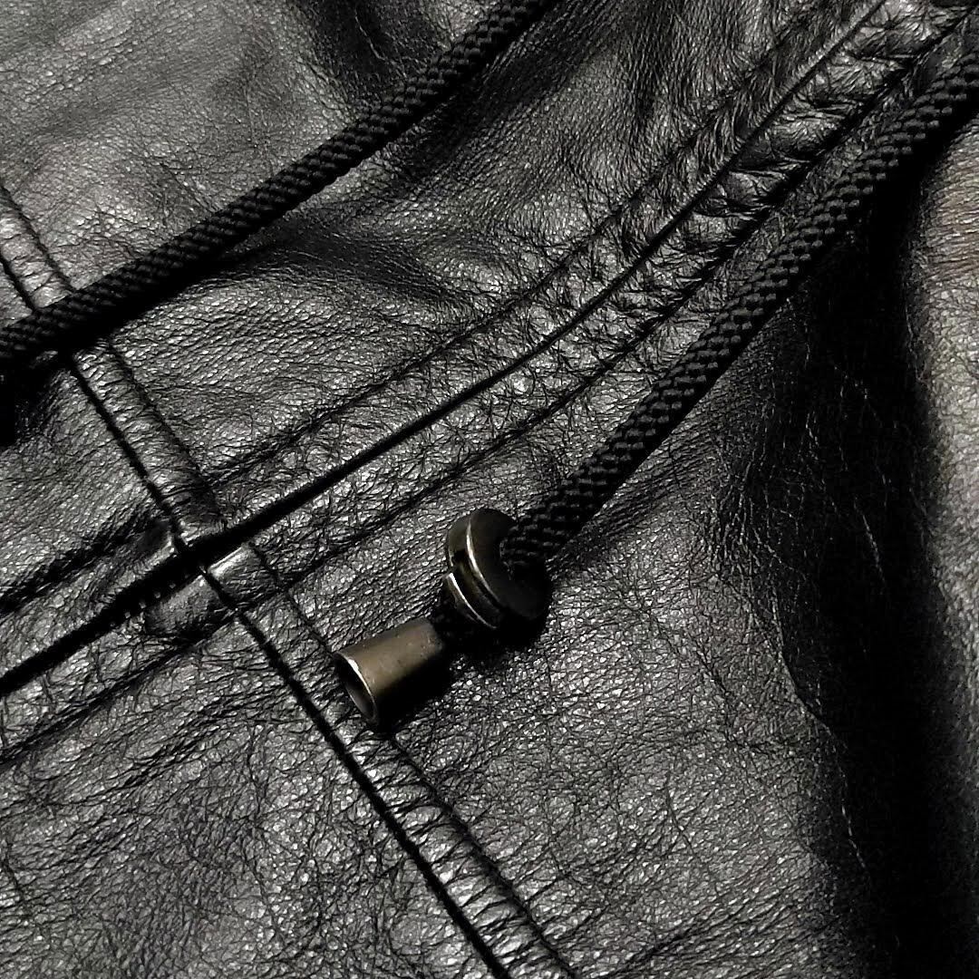 ・送料無料 ウィルソンズレザー WIL SONS LEATHER レザーコート ジャケット ブルゾン アウター ジップアップ フード フーディ パーカー L 黒 ブラック系 メンズ